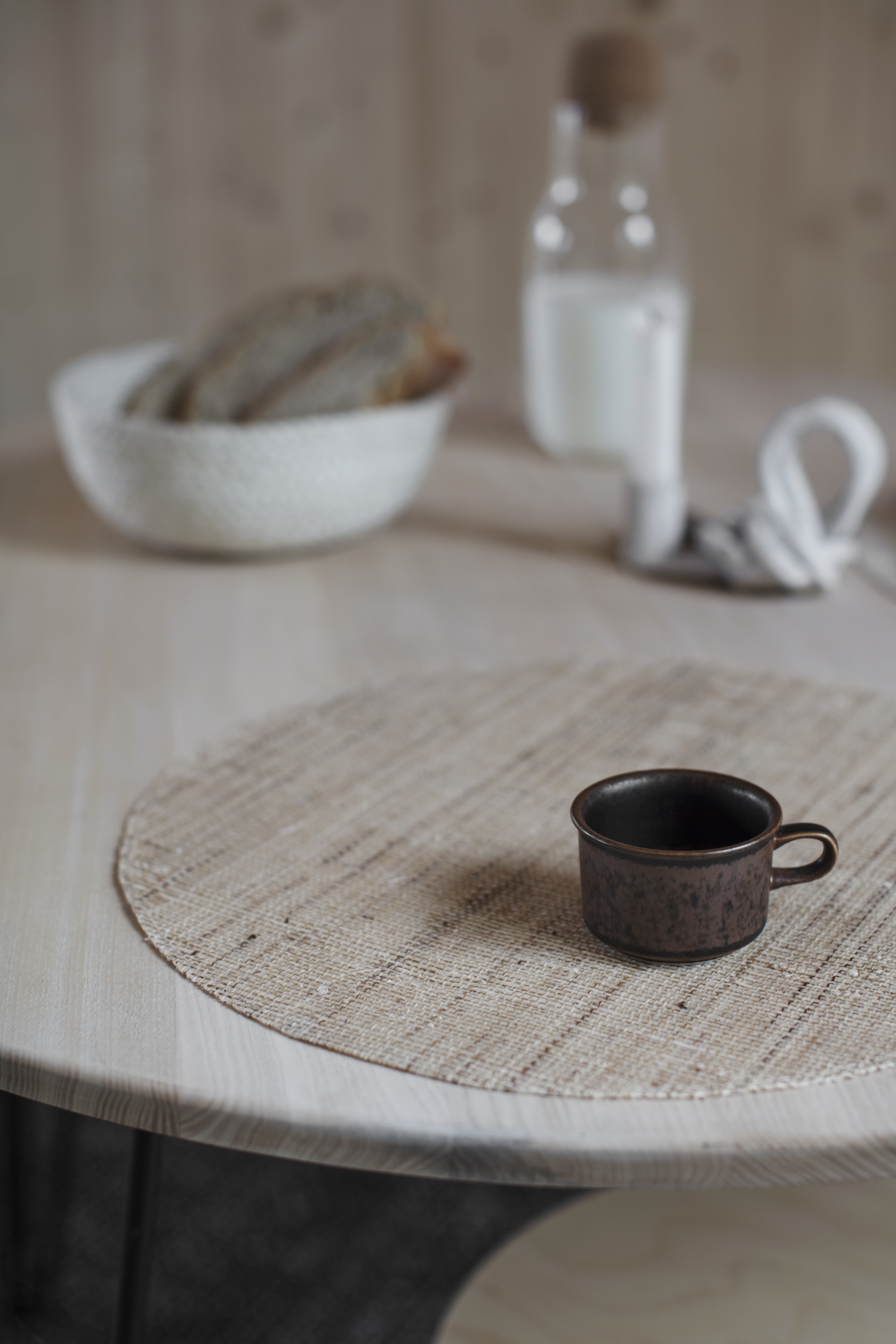 De fibrer som ligger i linplantans stjälk blir till ett vackert lingarn som vi väver till bordstabletter som sedan doppas i naturlig stärkelse för längre hållbarhet.